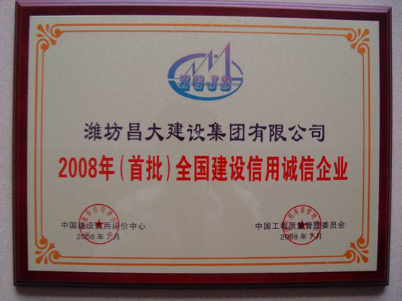 濰坊昌大建設(shè)集團(tuán)被授予“2008年(首批)全國(guó)建設(shè)信用誠(chéng)信企業(yè)”