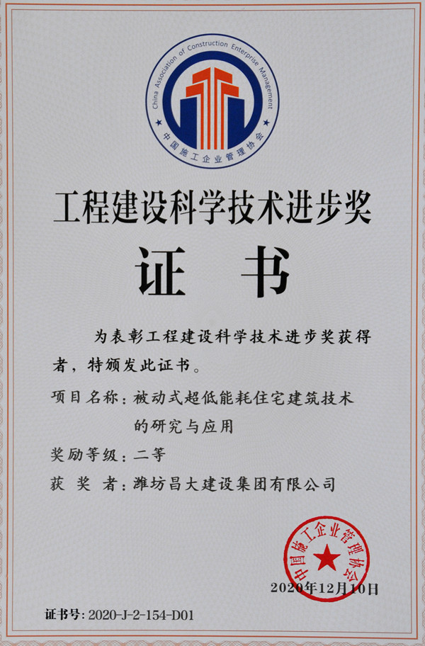 2020年12月11日,中國施工企業(yè)管理協(xié)會在北京召開“2020年工程建設(shè)科學(xué)技術(shù)獎勵大會”,表彰了工程建設(shè)最高科學(xué)技術(shù)獎1項,工程建設(shè)技術(shù)發(fā)明獎10項,工程建設(shè)科學(xué)技術(shù)進(jìn)步獎343項。其中,集團(tuán)二建公司工程公司《被動式超低能耗建筑住宅技術(shù)的研究與應(yīng)用》,經(jīng)過形式審查、專家網(wǎng)絡(luò)評審、專家委員會會議評審、科學(xué)技術(shù)委員會審定四個階段(本年度評審?fù)ㄟ^率只有40%),最終榮獲工程建設(shè)科學(xué)技術(shù)進(jìn)步獎二等獎。![]() |